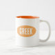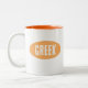 Eine Tasse mit einer hellorangen Farbe, auf der "Griechisch" steht. WEITERES BUCHSTABEN