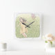 さなしむじ 広い緑の草原を追いかける兎から走って逃げる橙色のワンピースの女性 QUADRATISCHE WANDUHR