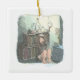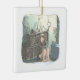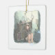 さなやにじ 薄明るい水色のお部屋の本棚のそばで座る素足の女性のイラスト KERAMIKORNAMENT