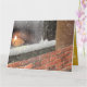 雪の降る窓辺にキャンドルの温かい炎が見えるカード。