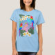 南国の美しい植物と、オウムに囲まれてダーツを構える柄のTシャツです。
