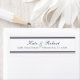 Weißer Hintergrund mit korallenblauen und marineblauen, dünnen Streifen und elegantem Schriftart in der Rücksendeadresse für einen schönen nautischen Look