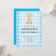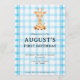 002 Cerulean Blue Check Giraffe Birthday Invite Einladung