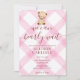 009 Fuchsia Pink Teddy Bear Gingham Baby Shower Einladung
