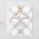 020 Fog Grey Teddy Bear Gingham Baby Shower Einladung
