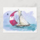 Racing-Sloop mit Spinnaker segeln hoch. In Aquarellfarbe für das 100 Sailboats Projekt. Weitere Informationen finden Sie unter RiverbyNight.com.