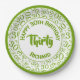 Personalisieren Sie den Text in der Mitte einfach mit Ihrem Namen, Alter und Event mithilfe der bereitgestellten Vorlagen. Dieses Design ist ein grün-weiße Zufallszahlenmuster mit Meilenstein Nummer 30 in verschiedenen Größen und Winkeln wiederholt. Ihr Text wird auf dem weißen Kreis in der Mitte gedruckt. Das Design ist mit weißen und grünen Ringen um den Rand getrimmt. Nicht nur zum Geburtstag; das Design ist für jede Anlässe geeignet, persönlich oder beruflich, mit Meilenstein Nummer 30.