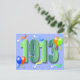 Eine farbenfrohe Postkarte zum 100. Geburtstag mit Ballons und Streamern für den 100. Geburtstag in deinem Leben! Matching Briefmarke und Grußkarte verfügbar.