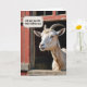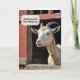 Eine Bauernziege, die aus einem rustikalen Scheunenfenster mit einer Sprechblase zum 100. Geburtstag pinkelt. Alle Texte können geändert werden.