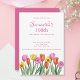 Schöne Aquarellbilder von bunten Frühlingtulips - perfekt für eine Frühjahrstagsfeier. Passen Sie die Einladungskarte zum 100. Geburtstag für jeden Meilenstein an.
