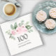 Rosa Rosen sind in Eukalyptus-Blätter eingebettet. 100, der Name des Prominenten und 100 Geburtstag folgen. Alle Texte können bearbeitet werden.