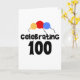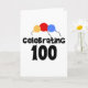 Drei primäre Farbballons und schwarzer Text, der "Celebrating 100" auf 100. Geburtstagskarten, T - Shirt, Tasse und mehr lautet.