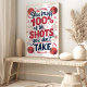 Lancez votre champion intérieur avec cette puissante affiche de motivation sur le thème du basket. Avec la citation emblématique "Vous manquez 100% des coups que vous ne prenez pas" en typographie audacieuse, cette impression est un rappel dynamique pour relever les défis, prendre des risques, et ne jamais renoncer à vos objectifs. Parfait pour ajouter une touche d'inspiration à la maison, au bureau ou à la salle de sport de tout passionné de sport.