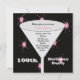 A la recherche d'une merveilleuse invitation à la fête du 100e anniversaire pour elle...voilà ! Des feux d'artifice roses sont dans l'arrière - plan derrière un verre qui contient tous les détails de votre invitation à la fête du 100e anniversaire. Une merveilleuse invitation festive à une fête du 100e anniversaire. Copyright henishouseo