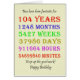 104. Geburtstagskarte, die die Jahre, Tage, Monate, Stunden und Minuten abzählt. Eine Karte, die zum Nachdenken anhält! Es wurden die Leap-Jahre berücksichtigt!
