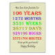 106. Geburtstagskarte, die die Jahre, Tage, Monate, Stunden und Minuten abzählt. Eine Karte, die zum Nachdenken anhält! Es wurden die Leap-Jahre berücksichtigt!