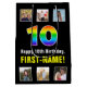 Dieses lustige und optimistische Geschenktütendesign mit Geburtstagsthema zeigt eine große Zahl "10" mit einem lebendigen Regenbogenspektrum inspirierten Farbverlaufsmuster, zusammen mit der Meldung "Happy 10 th Birthday" und einem personalisierten Empfängernamen. Die Fotos über und unter der Nachricht können personalisiert sein, vielleicht mit Fotos des Empfängers, der Familie und Freunden des Empfängers und/oder dem/den Absender(en) des Geschenks. Eine Geschenktasche wie diese könnte eine lustige Art sein, ein Geburtstagsgeschenk zu verpacken, das jemandem geschenkt wird, der seinen zehnten Geburtstag feiert. (Fotografie © Storytree Studios, Stanford, CA.) [~Z000669]