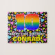 Dieses aufregende und farbenfrohe Puzzle-Design aus dem Geburtstag zeigt eine große Zahl "10" mit einem bunten Regenbogenspektrum, inspiriert Farbverlaufsmuster, zusammen mit der Meldung "HAPPY 10 th BIRTHDAY" und einem bearbeitbaren Empfängernamen. Der Hintergrund hat ein fröhliches Muster liebender Herzformen verschiedener Größen und Farben. Ein auffälliges, maßgeschneidertes Geburtstagsrätsel wie dieses könnte eine lustige Art sein, jemandem, der seinen zehnten Geburtstag feiert, Geburtstag zu schenken. [~Z0000611]