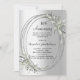 Ein Imitat silber aussehender Hintergrund. Die Einrichtung ist mit Grün und einem ovalen Rahmen gestaltet. Personalisieren und fügen Sie einen Namen und Details.