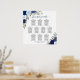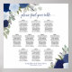 Ce magnifique tableau de sièges mariage comprend 10 tables ornées d'un charmant design floral rustique avec des roses délicatement peints à la main dans les tons bleu poussiéreux, bleu marine et indigo, avec des accents d'eucalyptus feuilles luxuriants et de verdure du jardin. L'aménagement peut accueillir jusqu'à 100 personnes, avec 10 places disponibles par table. L'élégant titre de calligraphie de script dit "s'il vous plaît trouvez votre table" et les noms du couple et de leur mariage apparaissent en bas. Ce tableau de sièges est à la fois esthétique et fonctionnel, ce qui rend facile pour les invités de localiser leurs sièges désignés tout en ajoutant à la beauté globale de votre réception de mariage.