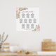 Ce tableau de 10 places mariage présente un design boho chic floral avec des roses d'aquarelle peints à la main et des fleurs dans les tons rose vif, pêche au corail, rose poussiéreux, mauve, avec des feuilles d'eucalyptus et le feuillage du jardin. L'aménagement traditionnel peut accueillir 100 convives à raison de 10 places par table. Le titre est doté d'élégantes calligraphies de script et il y a de l'espace pour les noms du couple et la date du mariage en bas. Une façon merveilleuse d'ajouter beauté, élégance et charme rustique à votre réception de mariage tout en facilitant la recherche de sièges par vos invités.