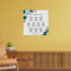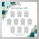 Ce magnifique tableau de sièges mariage comprend 10 tables ornées d'un design floral rustique avec des roses délicatement peints à la main dans des tons turquoises, turquoise, aqua et cyan, avec des accents d'eucalyptus feuilles luxuriants et de verdure du jardin. L'aménagement peut accueillir jusqu'à 100 personnes, avec 10 places disponibles par table. L'élégant titre de calligraphie de script dit "s'il vous plaît trouvez votre table" et les noms du couple et de leur mariage apparaissent en bas. Ce tableau de sièges est à la fois esthétique et fonctionnel, ce qui permet aux invités de repérer facilement leurs sièges désignés tout en ajoutant à la beauté globale de votre réception de mariage.