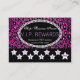 Cette carte élégante de fidélité d'affaires comporte 10 poinçons, avec la récompense lors de la 10ème visite. Cette carte est installée pour le service gratuit du choix du client lors de la 10ème visite, mais peut être facilement éditée avec votre propre information de programme de récompenses. Perfectionnez pour un coiffeur, un salon de coiffure, un spa, une boutique ou un magasin. Empreinte de léopard pourpre chic de neige avec le noir. {{Clic "PERSONNALISER" pour changer couleurs des textes, polices et pour plus d'options de édition}}