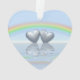 Zwei Zinn- oder Aluminiumherzen schwimmen unter einem Regenbogen auf dem Wasser. Der Text "10 Jahre" steht für anpassbar.
