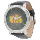 Uhr, Vintage Männeruhr mit schwarzem Lederarmband