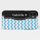 Coque iPhone 5 élégant conçu avec un motif zigzag bleu & blanc chevron, un cadre noir sur le côté gauche, et personnalisé avec votre nom ou texte personnalisé en blanc sur le cadre noir. Cette conception est parfaite pour l'utilisation verticale et horizontale de l'iPhone 5.