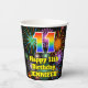 Dieses farbenfrohe und aufregende Geburtstagspapier-Cup-Design zeichnet sich durch eine große Zahl "11" mit einem inspirierten Regenbogenspektrum aus. Es enthält auch die Meldung "Happy 11 th Birthday", und einen personalisierten Namen. Der Hintergrund zeichnet sich durch ein lebendiges und farbenfroh inspiriert Muster aus, das durch das Bersten von feierlichen Feuerwerken wird. Farbenfrohe, lebendige Papiertassen wie diese könnten Spaß machen, an einem Geburtstagsfest zu feiern, das zur Feier des elften Geburtstages von jemandem gefeiert wird. [~Z0000539]