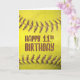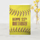 Extreme Schließung eines gelben Weichballs mit rötlich-brauner Naht zum 11. Geburtstag.