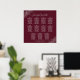 Ce tableau de 11 places est à la fois simple et élégant avec du texte gris pâle sur un arrière - plan bordeaux ou marron. Le design comporte un titre de calligraphie en dentelle avec un faux film en argent frileux décoratif dans les coins. Une façon élégante, chic et sophistiquée d'aider vos invités à trouver leur siège à votre réception de mariage. Il comprend l'assignation de table pour 110 personnes avec 10 places par table.