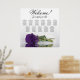 Cet élégant tableau de sièges de mariage dispose de 11 tables, chacune de 10 places, pour un total de 110 personnes. Le design exhale romantisme, sophistication et beauté, mettant en scène un seul rose de couleur violet royal sur son côté, se reflétant dans un bassin d'eau. Le titre du graphique, "Bienvenue ! S'il vous plaît Trouvez votre table" est écrit en calligraphie de script sophistiquée, laissant suffisamment d'espace pour les noms du couple et la date du mariage en bas. Ce tableau de sièges constitue un geste d'accueil parfait pour votre réception de mariage et aide les invités à trouver facilement leurs sièges désignés.