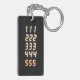 Black keychain with the repeating numbers 111,222,333,444,555 from an alarm clock on the front and back, with the numbers in orange.