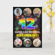An der Vorderseite dieses aufregenden Geburtstagskarten-Designs steht die Nummer "12" mit einem lebendigen Regenbogenspektrum inspiriert Farbverlaufsmuster, zusammen mit der Meldung "HAPPY 12. BIRTHDAY" und einem personalisierten Namen auf einem bunten Feuerwerk, inspiriert Muster. In der Nähe von oben und unten sind Bilder, die individuell angepasst werden können, vielleicht mit Fotos der Familie und Freunden des Empfängers. Die Innenseite verfügt über eine benutzerdefinierte Geburtstagsgrüßbotschaft oder könnte gelöscht und leer verlassen werden, wenn eine Nachricht von Hand geschrieben werden soll. Eine aufregende, bearbeitbare Geburtstagskarte wie diese könnte dazu verwendet werden, jemandes zwölften Geburtstag zu feiern. (Fotografie © Storytree Studios, Stanford, CA.) [~Z000660]