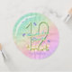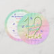 Ein farbenprächtiger Regenbogen, rosa Blume und Lavendelschmetterlinge auf Mädchen 12. Geburtstagsfeier rund geformt Einladung. Vor- und alle Informationen auf der Rückseite der Einladung können mit dem beigefügten Muster personalisiert werden.