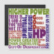 Die 12-Stufen-Erholung-Slogans über unseren höheren Power, einige lustige nicht: Als wir ihn verstanden, Power größer als wir selbst, Spirituell nicht religiös, Es gibt einen Gott und du bist es nicht! Außerdem einige der zwölf Stufen HP Akronyme: Gruppe der Trunkenen, Gute geordnete Richtung, Geschenk der Verzweiflung. Mein Sponsor sagt das die ganze Zeit. Für Süchtige, Alkoholiker, Überfresser, Spieler und alle in der Erholung.