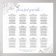 Dieses 12-Tisch Hochzeitsstühle Diagramm ist sowohl einfach als auch elegant. Es beinhaltet Tischbelegung für 120 Gäste mit 10 Plätzen pro Tisch. Das Design zeigt dunkelgrauen und hellblauen Text auf einem weißen Hintergrund mit einem laky Script Kalligraphietitel. Die Ecken sind mit einem kühnen Imitat-Folie silberne Filigree mit Gardinen und Wirbel dekoriert. Stilvoll, elegant und raffiniert, um Ihren Gästen zu helfen, ihren Platz am Empfang zu finden.
