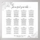 Ce tableau de 12 places mariage est à la fois simple et élégant. Il comprend l'assignation de table pour 120 personnes avec 10 places par table. Le design comporte du texte gris foncé sur un arrière - plan blanc avec un titre de calligraphie de script dentée. Les coins sont décorés d'un faux fil argenté frileux avec des boucles et des tourbillons. Une façon élégante, chic et sophistiquée d'aider vos clients à trouver leur place à la réception.