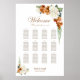 Aidez vos invités à trouver leur table avec ce tableau de sièges à fleurs de rose blanche et orange brûlé. Il convient à une mariage de 12 tables et 120 couverts.