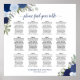Pour faciliter la tâche de vos invités mariages, trouvez leurs tables à la réception grâce à ce magnifique tableau de sièges arborant un magnifique design boho chic floral orné de roses peints à la main dans une belle palette de couleurs bleu poussiéreux, bleu marine et indigo. Les fleurs sont accentuées par de délicats sprigs d'eucalyptus feuilles et le feuillage du jardin, et le titre calligraphique élégant ajoute une touche de sophistication à l'ensemble. Ce tableau peut contenir 120 noms sur 12 tables de 10 places chacune, et il y a de l'espace pour les noms du couple et la date du mariage en bas.