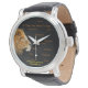 Uhr, Vintage Männeruhr mit schwarzem Lederarmband