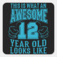 12 YEAR OLD 12th Birthday Quadratischer Aufkleber