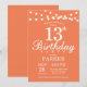 13. Geburtstag Einladung mit String Lights. Korallenuntergrund. Kindergeburtstag. Girl Lady Bday einladen. 13. 15. 16. 18. 20. 21. 30. 40. 50. 60. 70. 80. 90. 100. Jedes Alter. Für weitere Anpassungen klicken Sie bitte auf die Schaltfläche "Anpassen" und verwenden Sie unser Designwerkzeug, um diese Vorlage zu ändern.