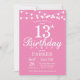 13. Geburtstag Einladung mit String Lights. Rosa Hintergrund. Kindergeburtstag. Girl Lady Bday einladen. 13. 15. 16. 18. 20. 21. 30. 40. 50. 60. 70. 80. 90. 100. Jedes Alter. Für weitere Anpassungen klicken Sie bitte auf die Schaltfläche "Anpassen" und verwenden Sie unser Designwerkzeug, um diese Vorlage zu ändern.