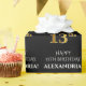 Dieses luxuriöse und elegante Geburtstagsdesign beinhaltet die Meldung "HAPPY 13 th BIRTHDAY", einen personalisierten Namen und die Geburtstagsnummer "13." mit einem inspirierten Erscheinungsbild von Imitaten/Imitationen. Der Hintergrund ist schwarz. So ein Umschlagpapier könnte zum Umpacken von Geschenken/Geschenken verwendet werden, die anlässlich des 13. Geburtstages von jemandem gegeben werden sollen. [~Z0000454]