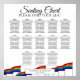 Ce tableau montre les assignations de sièges de réception de mariage pour 130 personnes à 13 tables. Le design comprend des drapeaux de la fierté arc-en-ciel, ce qui le rend parfait pour tout mariage gay, lesbien, queer ou lgbtq.