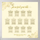 Ce beau tableau de 13 places mariage comprend des assignations de table pour 130 personnes avec 10 places par table. Le design présente du texte en or sur un arrière - plan couleur crème ou ivoire avec un titre de calligraphie en écriture dentée. Les coins sont décorés d'un faux fil frileux avec des boucles et des tourbillons qui le rendent à la fois simple et élégant. Une façon élégante, chic et sophistiquée d'aider vos clients à trouver leur place à la réception.