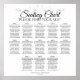 Ce tableau montre les assignations de sièges de réception de mariage pour 130 personnes à 13 tables. Le design est simple, élégant et sophistiqué avec des lettres de script, du texte en noir et blanc, et une vintage filigree florale dans une couleur fausse feuille argent.